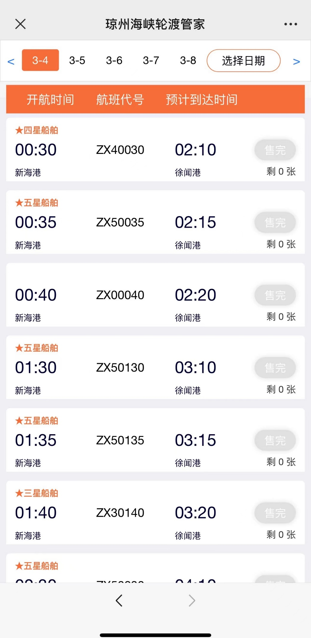 記者18日晚從“瓊州海峽輪渡管家”上查詢發(fā)現(xiàn),3月5日之前從??谛阌⒏邸⑿潞8鄢龈矍巴鶑V東湛江徐聞縣的新能源小汽車輪渡船票均顯示售罄;3月5日當(dāng)天及之后的票暫無法購買。劉先生說:“這已經(jīng)是正常上班的時間了,至少我們看到周邊的這些新能源車跟初七、初八之前的車輛是相等的;跟去年或者往年比的話,滯留車還是比較多?!?/p>