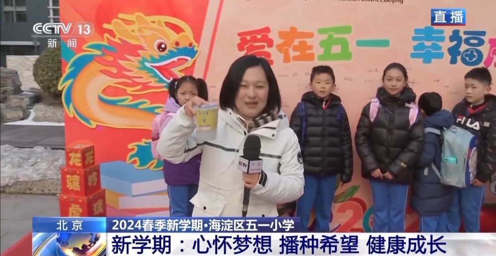 總臺央視記者 李晶晶:北京市第八中學(xué)高中部,近2300名高中生齊聚國旗下,舉行新學(xué)期的第一次升旗儀式,在滿滿的儀式感中開啟新的學(xué)習(xí)生活。今年是龍年,有句祝福語叫“龍行龘龘,前程朤朤”,現(xiàn)在正在進(jìn)行的國旗下的演講,題目就是《龘龘朤朤間是向上的力量》,老師祝福學(xué)生們像龍一樣騰飛而上,同時也是鼓勵他們要有夢想,為實現(xiàn)夢想不斷努力向上。