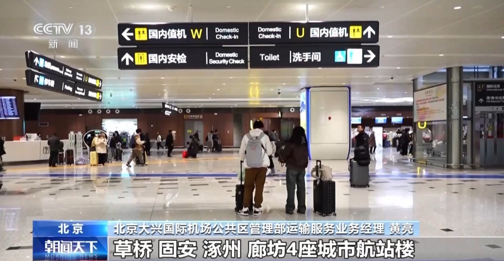 北京大興國際機(jī)場公共區(qū)管理部運(yùn)輸服務(wù)業(yè)務(wù)經(jīng)理 黃亮:大興機(jī)場投運(yùn)4年多來,草橋、固安、涿州、廊坊4座城市航站樓累計(jì)服務(wù)旅客超135萬人次。京雄高速和津興城際鐵路開通,目前每日開行列車26對(duì),覆蓋北京、天津、雄安、霸州、固安、唐山等區(qū)域;通過鐵路換乘,大興機(jī)場兩小時(shí)地面交通圈可以覆蓋京津冀地區(qū)主要城市。
