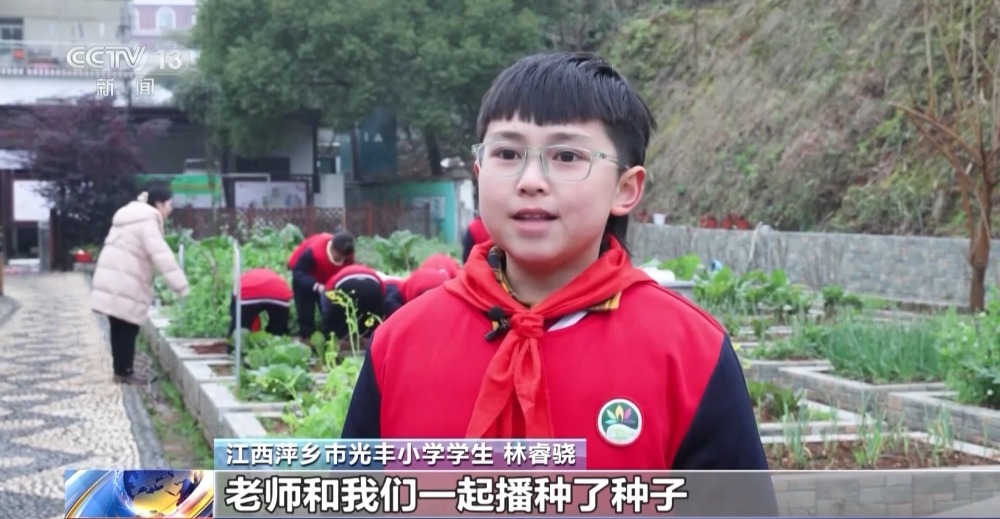 在江西萍鄉(xiāng),光豐小學的老師將新學期的第一課放到了室外,孩子們來到菜園實地觀察各種農(nóng)作物,將手中的蔬菜種子播撒在土地里,親身體驗勞動的過程。