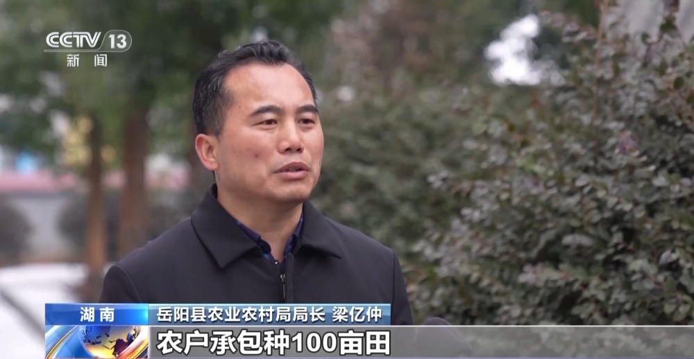 岳陽(yáng)縣農(nóng)業(yè)農(nóng)村局局長(zhǎng) 梁億仲:通過(guò)去年我們?cè)圏c(diǎn)的情況,農(nóng)戶承包種100畝,是我們當(dāng)?shù)胤N田效益最高的模式。為什么呢?因?yàn)槲覀兇蠖嗍乔鹆晟降?,不適合大面積連片種植。這種種糧方式,是我們因地制宜,通過(guò)實(shí)踐得出的。