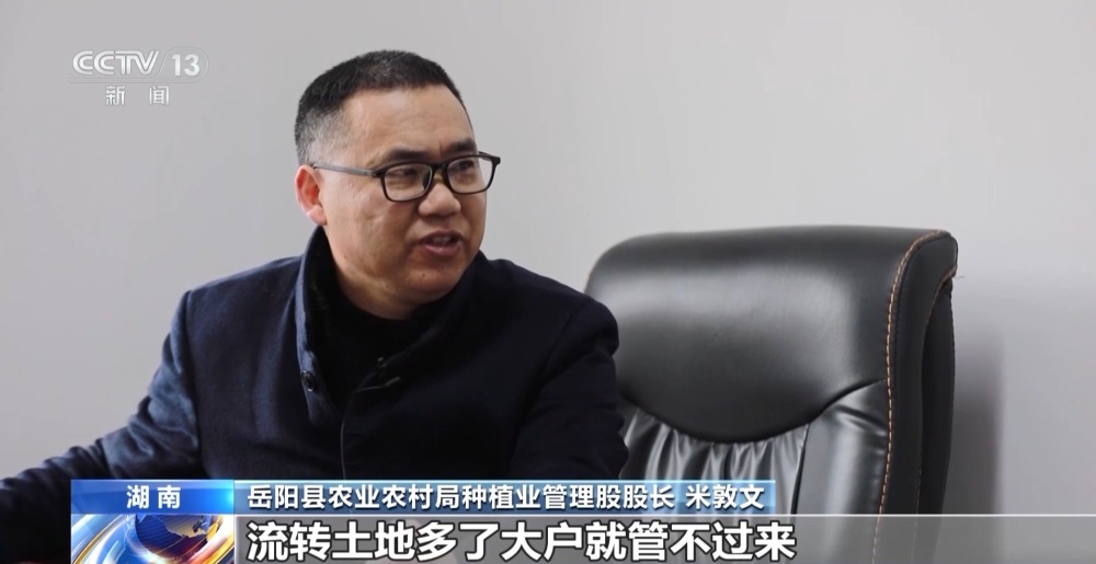 岳陽(yáng)縣農(nóng)業(yè)農(nóng)村局種植業(yè)管理股股長(zhǎng) 米敦文:流轉(zhuǎn)土地多了,大戶就管不過(guò)來(lái),請(qǐng)人又保證不了畝產(chǎn),還要增加開(kāi)支,大戶的心氣也跟著往下掉。所以還是不能搞貪大求多那個(gè)老一套,還是要鼓勵(lì)大戶在耕種上精耕細(xì)作,提高產(chǎn)量,增加效益。