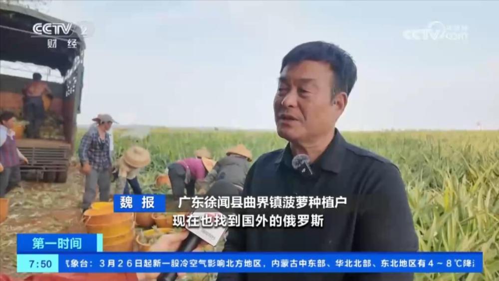 廣東徐聞縣曲界鎮(zhèn)菠蘿種植戶 魏報:現(xiàn)在也找到國外的俄羅斯,我們都引進了不少客戶過來。