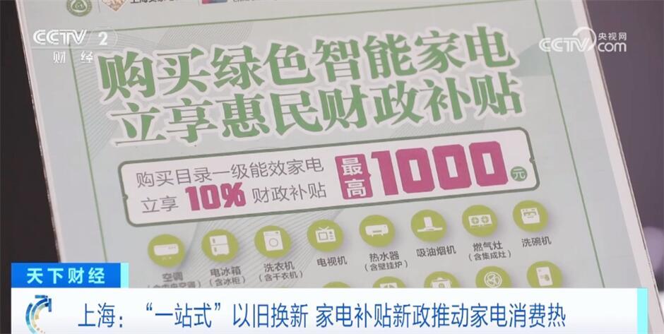 央視網(wǎng)消息:日前,國務(wù)院印發(fā)《推動(dòng)大規(guī)模設(shè)備更新和消費(fèi)品以舊換新行動(dòng)方案》,明確實(shí)施消費(fèi)品以舊換新行動(dòng)。上海市從3月30日起實(shí)施新一輪綠色智能家電消費(fèi)補(bǔ)貼政策,對(duì)16大類一級(jí)能效家電產(chǎn)品進(jìn)行補(bǔ)貼,各大商超賣場也推出“一站式”以舊換新、延伸局部改造等補(bǔ)貼及服務(wù)。