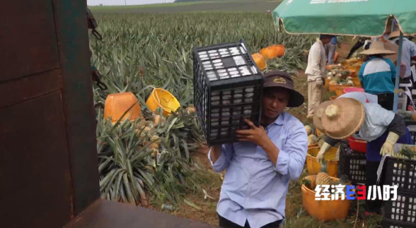種植大戶朱學(xué)帝家的110畝菠蘿依次成熟,這天收割的5萬(wàn)斤菠蘿要在太陽(yáng)下山前發(fā)往甘肅蘭州。為了搶工,工人們從早上6點(diǎn)鐘干到下午四五點(diǎn)鐘,雖然很累,但是豐產(chǎn)不愁賣的紅火局面還是讓他們心里樂開了花。