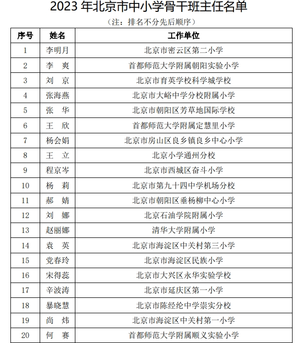 2023年北京市中小學(xué)骨干班主任、幼兒園骨干主班教師名單公布
