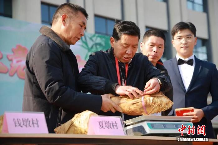 中新網(wǎng)南平1月19日電(廖敏愷 宗治明 陳沁林)“圍徑46.2厘米,重5.55斤,夏墩村獲得第一名!”隨著專家評(píng)定結(jié)果揭曉,福建南平順昌縣嵐下鄉(xiāng)郭巖廣場(chǎng)瞬間沸騰,游客紛紛舉起手機(jī)記錄“筍王”風(fēng)采。種植戶劉樂(lè)明難掩激動(dòng):“我們的筍來(lái)自自家山林,自然生長(zhǎng)、品質(zhì)上乘!”