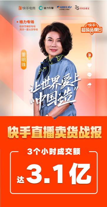 董明珠快手帶貨3小時成交破3億 老鐵消費力刷新認(rèn)知