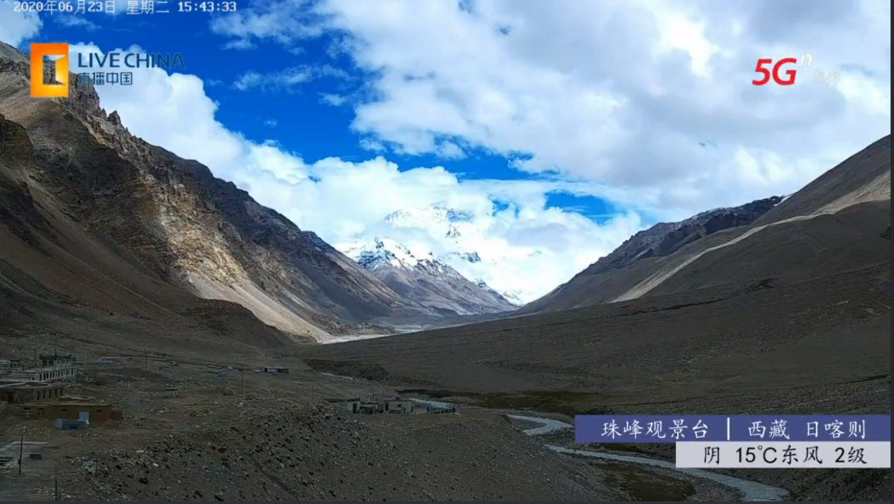 圖為中國(guó)聯(lián)通珠峰觀景臺(tái)5G直播畫面