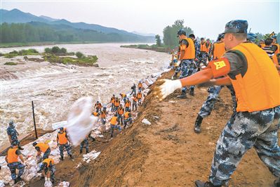7月19日,空降兵某旅官兵到達受災現(xiàn)場后,迅速向堤壩塌陷處運送沙袋。[詳細] -
