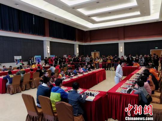 圖為“車輪賽”現(xiàn)場(chǎng),卡爾波夫與小棋迷過(guò)招。主辦方提供