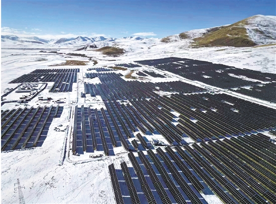 浙江省能源集團(tuán)在那曲海拔4750米的高寒缺氧地帶建設(shè)的50兆瓦光伏儲(chǔ)能電站。浙江援藏指揮部供圖