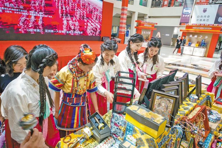 在吉林舉辦的“藏品入吉”展銷會上,游客在選購日喀則特產(chǎn)。