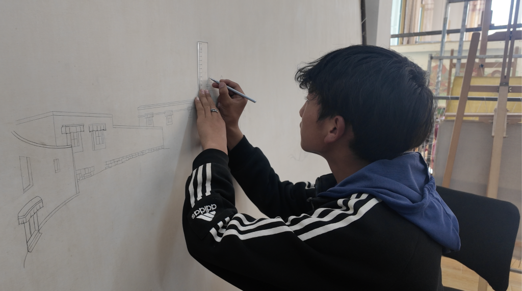 “樹有千條枝,樹根才是本?!备卢?shù)吕战虒?dǎo)學(xué)生時(shí)說,不論大小,畫師繪制唐卡時(shí)要凈手,保持內(nèi)心的寧靜與虔誠。