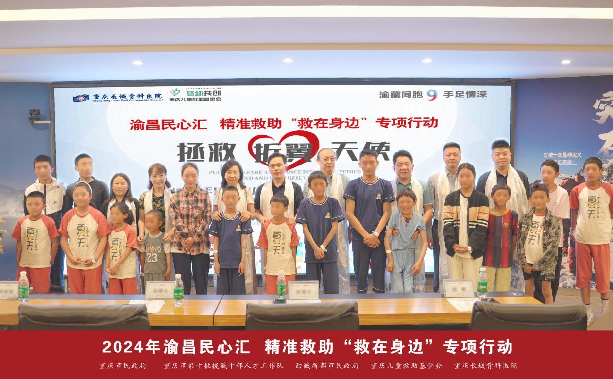 9月23日,由重慶市民政局、昌都市民政局主辦,重慶兒童救助基金會承辦,重慶長城醫(yī)院具體實(shí)施的渝昌民心匯 精準(zhǔn)救助“救在身邊”專項行動——“渝藏情深·拯救折翼天使”2024西藏手足傷殘兒童救治項目啟動暨歡迎儀式在重慶長城骨科醫(yī)院舉行。