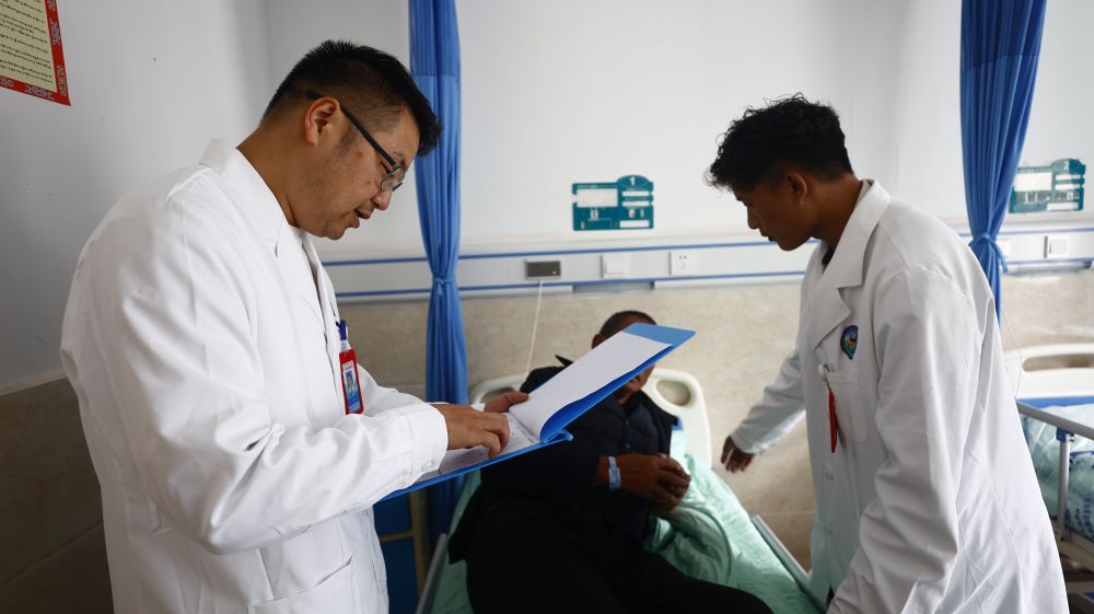 向桂林是一名援藏醫(yī)生,2023年3月,他從重慶市萬州區(qū)來到西藏自治區(qū)昌都市察雅縣開展醫(yī)療援藏工作。在察雅的一年半里,向桂林和隊(duì)員們參加了一百多次義診和下鄉(xiāng)指導(dǎo),累計(jì)接診門診患者1000余人次、救治住院患者400余人次,開展手術(shù)35臺(tái),申報(bào)新技術(shù)10項(xiàng)。今年國(guó)慶,向桂林選擇繼續(xù)留守工作崗位?!爸荒茉谝曨l通話里和家人團(tuán)聚了。但這是我們的責(zé)任更是一種榮譽(yù)?!毕蚬鹆终f。
