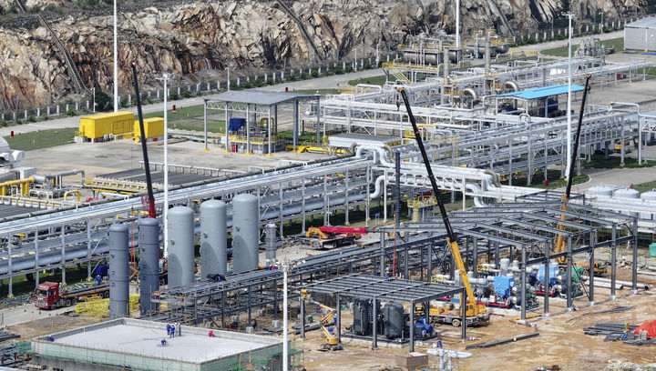 這是2024年6月21日拍攝的位于珠海經(jīng)濟(jì)開發(fā)區(qū)的中海石油深海開發(fā)有限公司二氧化碳回收利用項(xiàng)目塔器安裝現(xiàn)場。新華社發(fā)(邱婷 攝)