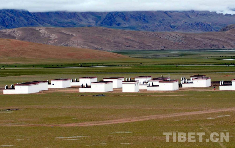 這是在中國(guó)石油援助下,雙湖特別區(qū)(現(xiàn)雙湖縣)多瑪鄉(xiāng)果根擦曲村牧民群眾住上了安居新房(唐召明2008年9月16日攝)