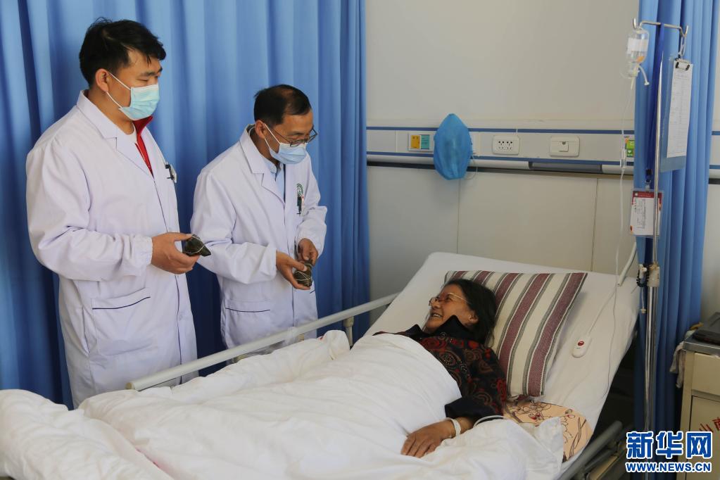 安徽援藏醫(yī)生給住院病人送上粽子和節(jié)日的問候。(新華社記者 張兆基 攝)