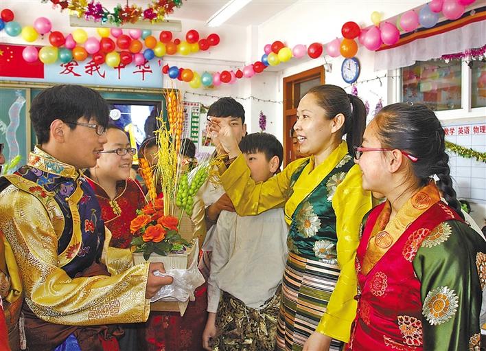 2015年以來(lái),通過(guò)實(shí)施教育人才“組團(tuán)式”援藏,有力提升了西藏的教育水平。目前,西藏有各級(jí)各類學(xué)校3195所,學(xué)前教育三年毛入園率達(dá)87%,小學(xué)凈入學(xué)率達(dá)99.93%,初中、高中、高等教育毛入學(xué)率分別達(dá)106.99%、90.2%、56.14%,縣域義務(wù)教育實(shí)現(xiàn)基本均衡發(fā)展,義務(wù)教育鞏固率95.03%,新增勞動(dòng)力人均受教育年限提高到13.1年。