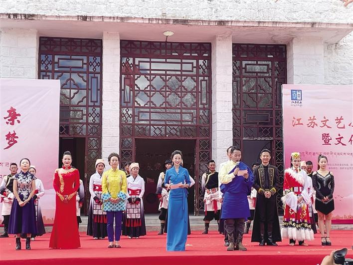 演出過程中,藏族演員們優(yōu)美的舞姿、充滿激情的表演,豐富地展現(xiàn)了獨特的高原風情;江蘇文藝小分隊的演員們高亢的歌喉、動聽的樂器表演、大氣磅礴的書法作品,鮮明地體現(xiàn)了中華傳統(tǒng)文化的獨特魅力?,F(xiàn)場,兩地演員們用精彩紛呈的演出,盡情表達了藏族兒女和全國各族人民一起勝利邁進全面小康社會的喜悅與幸福。
