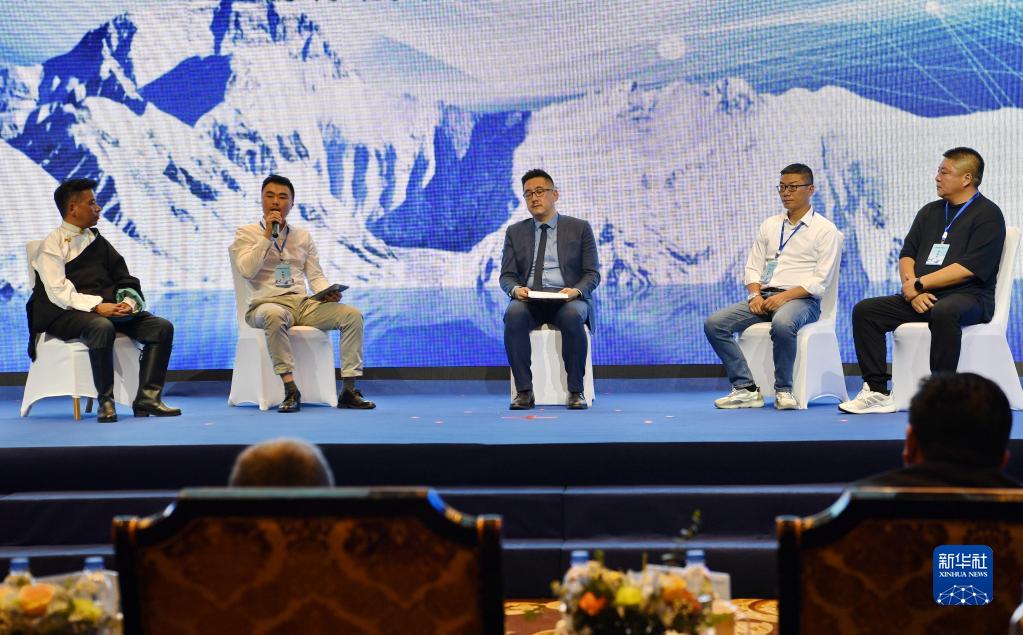 在2022年西藏日喀則旅游推介會暨數(shù)字旅游創(chuàng)新發(fā)展論壇上,國內(nèi)業(yè)界人士就數(shù)字文旅和日喀則旅游數(shù)字化發(fā)展前景進(jìn)行主題演講和對話(7月15日攝)。新華社記者 張汝鋒 攝