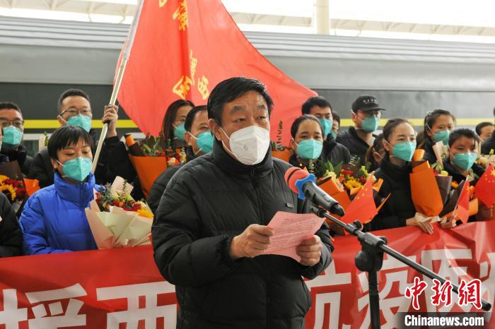 當(dāng)日,官方為醫(yī)療隊(duì)舉行歡迎儀式,工作人員手捧鮮花,以最高禮遇、最深敬意歡迎“白衣執(zhí)甲、逆行出征”的無(wú)私奉獻(xiàn)者們。青海省副省長(zhǎng)、省疫情防控指揮部副指揮長(zhǎng)匡湧出席歡迎儀式并講話。