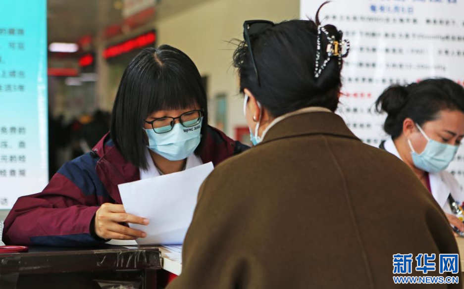 在肺動脈高壓相關(guān)疾病義診活動中,楊蘇喬醫(yī)生(左一)在為患者提供服務(wù)(5月5日攝)。新華社記者 邵澤東 攝