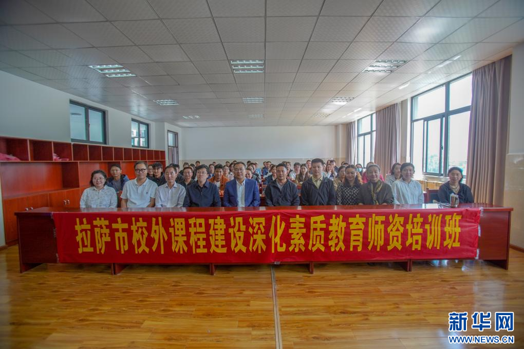 拉薩市校外課程建設深化素質(zhì)教育師資培訓班現(xiàn)場合影(8月23日攝)。新華社記者 邵澤東 攝