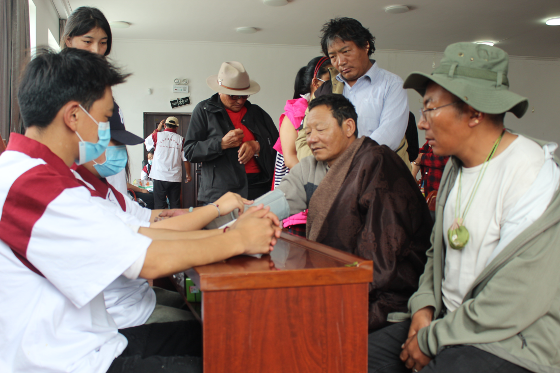 活動期間,“民族團結(jié)返鄉(xiāng)實踐團”師生先后到森布日高海拔生態(tài)搬遷安置點和那曲駐拉薩辦事處等,與西藏防治艾滋病協(xié)會工作人員共同開展“中醫(yī)藥健康進西藏 民族團結(jié)我先行”的愛心醫(yī)療志愿服務(wù),為當(dāng)?shù)乩习傩蘸屠细刹块_展針對性的中醫(yī)藥知識宣講,還為大家測血壓、血糖,共同體驗中醫(yī)藥花茶及香囊的制作過程,免費發(fā)放藥物等。