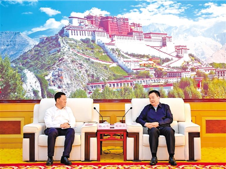 9月9日至13日,吉林省黨政代表團(tuán)來藏考察。自治區(qū)黨委書記王君正與吉林省委副書記、省長(zhǎng)胡玉亭一行座談。