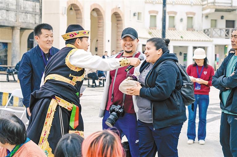 近日,林芝市非遺傳承人、青年企業(yè)家和青少年學(xué)生代表組團赴澳門特別行政區(qū)開展“石榴籽一家親”林芝非遺展演交流活動。在澳門青年展藝協(xié)會和澳門大學(xué),與澳門文創(chuàng)青年代表進行交流,學(xué)習(xí)非遺創(chuàng)新發(fā)展經(jīng)驗;在澳門漁人碼頭表演非遺舞蹈《米納羌姆》、工布扎念博咚彈唱《達姆韻》等節(jié)目,展現(xiàn)林芝的文化魅力。