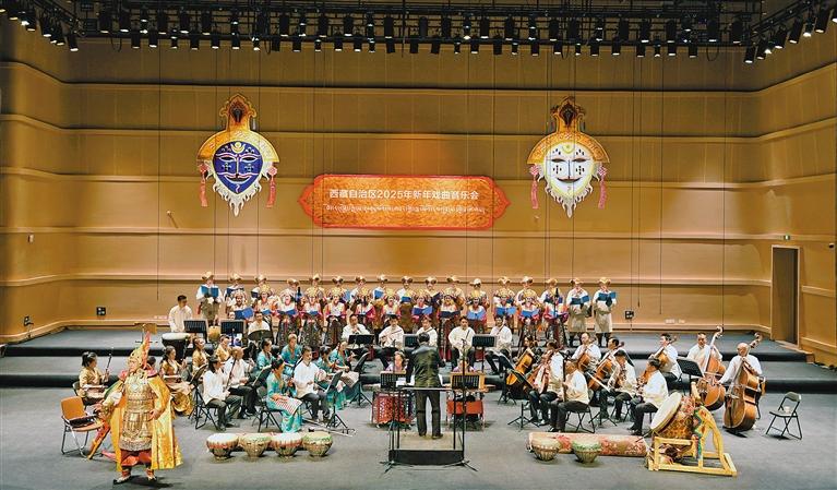 2月24日至25日,西藏自治區(qū)藏劇團與自治區(qū)歌舞團聯(lián)袂獻上西藏自治區(qū)2025年新年戲曲音樂會。音樂會由開場《扎西德勒》和尾聲《吉祥如意》以及《萬千思緒》《古韻新聲》《永續(xù)輝煌》三個篇章組成,包含十余個新創(chuàng)與經(jīng)典節(jié)目,為觀眾呈現(xiàn)了一場視覺與聽覺的盛宴。