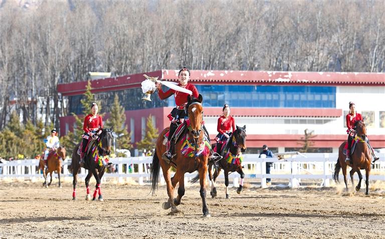 3月2日,由自治區(qū)體育局主辦、自治區(qū)社會和民族傳統(tǒng)體育指導管理中心承辦的2025年藏歷新年初三民族傳統(tǒng)馬術(shù)表演暨民族賽馬活動在拉薩市北郊賽馬場舉行。本次活動包括民族傳統(tǒng)馬術(shù)表演、民族賽馬兩個部分。馬術(shù)在西藏是吉祥、勇敢和智慧的象征,騎手們用精彩表演為觀眾送上新年的祝福。