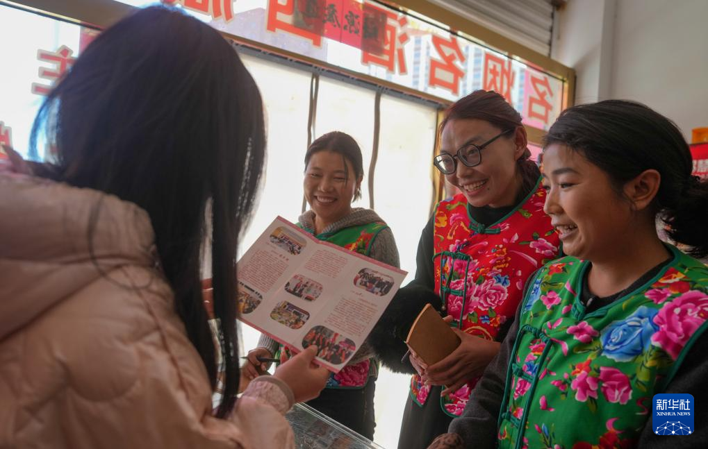 “花大姐”向轄區(qū)商戶宣傳議事會(huì)各種惠民事項(xiàng)(3月6日攝)。新華社記者 晉美多吉 攝