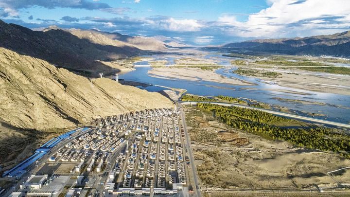 這是位于西藏山南市貢嘎縣的森布日搬遷安置點(diǎn)(2020年9月24日攝,無人機(jī)照片)。新華社記者 孫非 攝