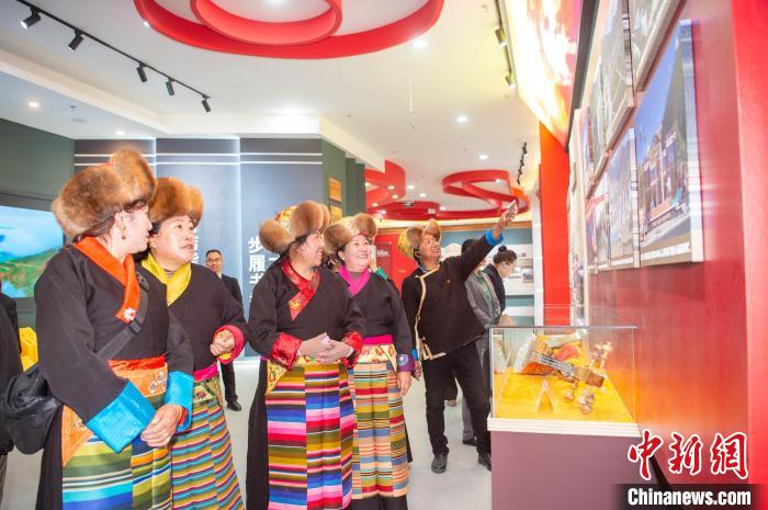 圖為當(dāng)?shù)厝罕娫谏H湛h鑄牢中華民族共同體意識(shí)教育實(shí)踐展廳參觀。旦增努布 攝