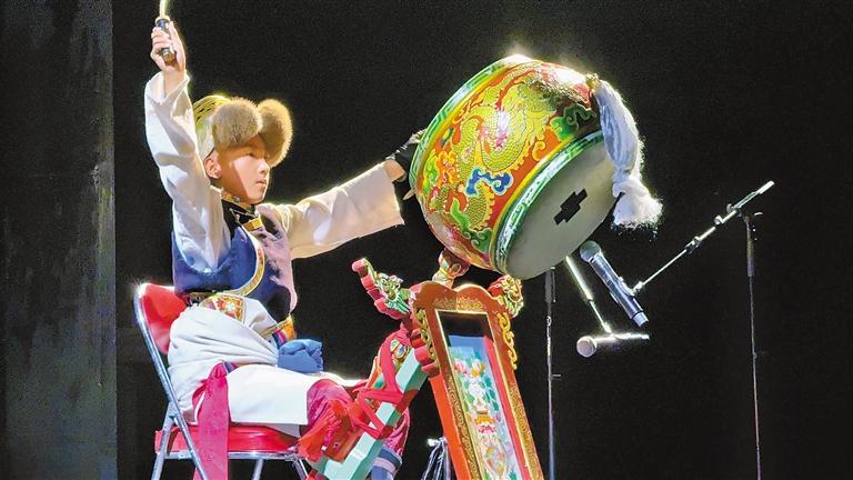 扎西多吉從小學(xué)一年級起便跟隨老師學(xué)藝,憑借扎實功底曾在“中國少兒戲曲小梅花薈萃”活動中獲得“小梅花”稱號?!八竟氖遣貞虻撵`魂節(jié)奏,每一次擊打都要帶著對傳統(tǒng)文化的敬意?!边@位14歲少年的專注與執(zhí)著,不僅收獲了藝術(shù)成就,更錘煉出沉穩(wěn)大氣的品格。母親措姆欣慰地表示:“看著孩子在藏戲?qū)W習(xí)中成長,是最幸福的事?!?/p>
