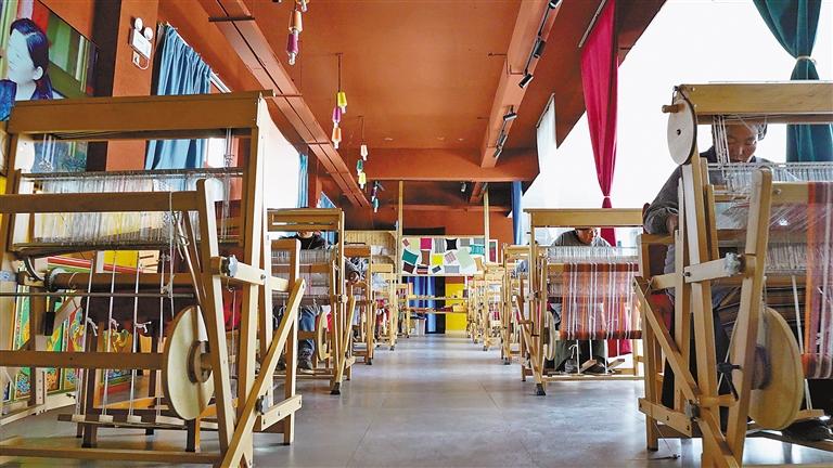 工作人員拉片說:“以前就算自己會(huì)編織,也沒有好的銷路,收入很少?,F(xiàn)在在這里工作,不僅每個(gè)月有固定的工資,還能照顧到家里,很方便。”