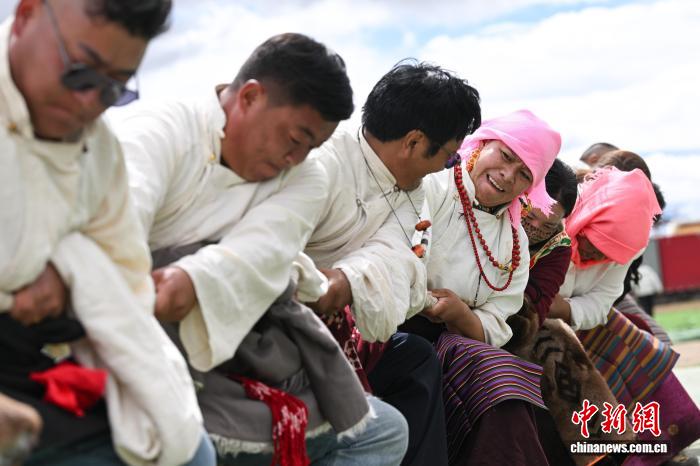 9月6日,西藏自治區(qū)那曲市恰青賽馬節(jié)的精彩賽事持續(xù)進行,男女混合拔河比賽現(xiàn)場氣氛熱烈。來自那曲各縣的參賽隊伍齊聚賽場,隊員們協(xié)同發(fā)力、奮勇拼搏。這一賽事不僅展現(xiàn)了那曲兒女的力量與默契,更傳遞出團結(jié)協(xié)作的精神,為賽馬節(jié)增添了別樣活力。圖為那曲恰青賽馬節(jié)拔河比賽現(xiàn)場。中新社記者 貢嘎來松 攝