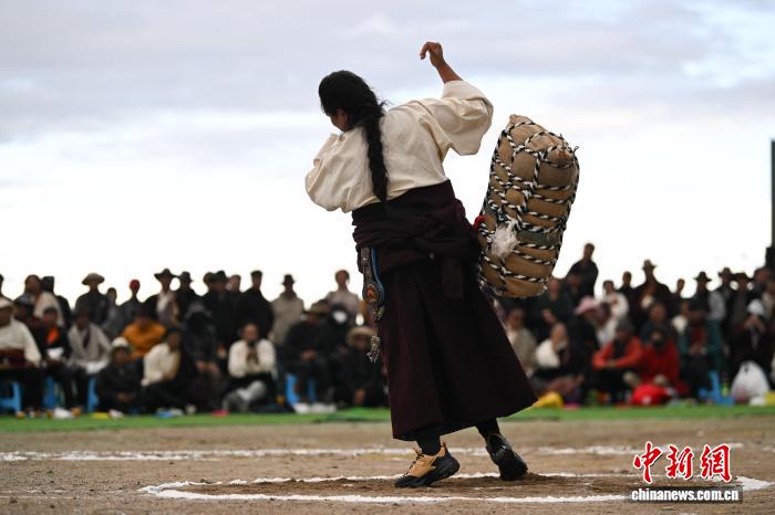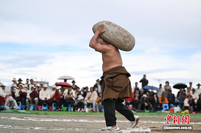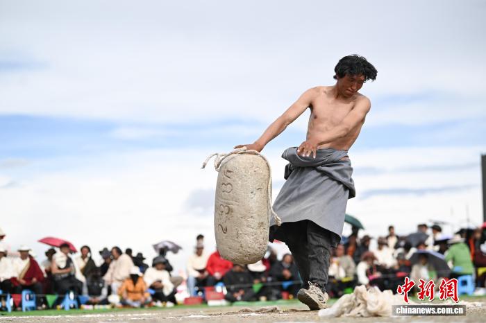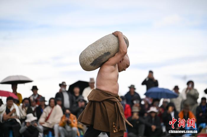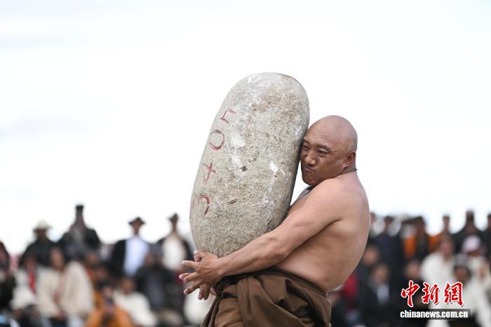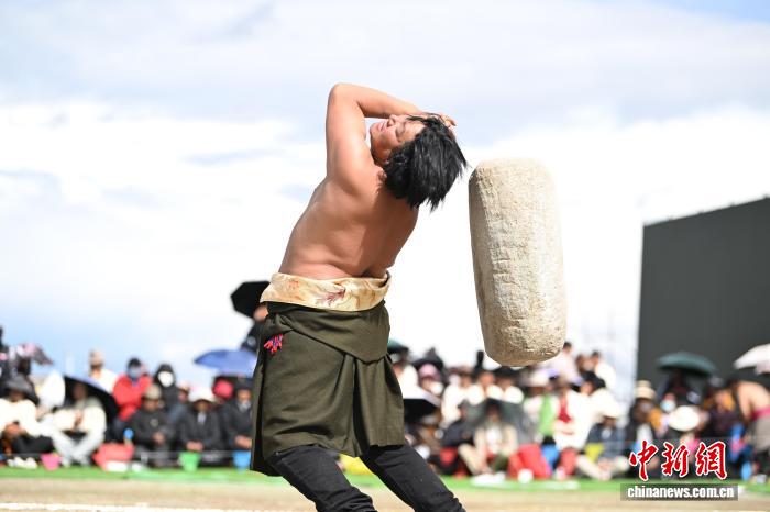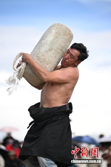 9月5日,2025年那曲市恰青賽馬節(jié)在格薩爾賽馬場(chǎng)開幕。當(dāng)日,賽場(chǎng)中不僅有駿馬飛馳,更有力量的精彩較量。在抱石頭比賽現(xiàn)場(chǎng),來(lái)自那曲市各縣(區(qū))的男女選手們鼓足干勁,挑戰(zhàn)自我。這項(xiàng)傳統(tǒng)體育項(xiàng)目,展現(xiàn)了藏北人民的堅(jiān)韌與力量。圖為男參賽選手在抱石頭比賽。中新社記者 貢嘎來(lái)松 攝