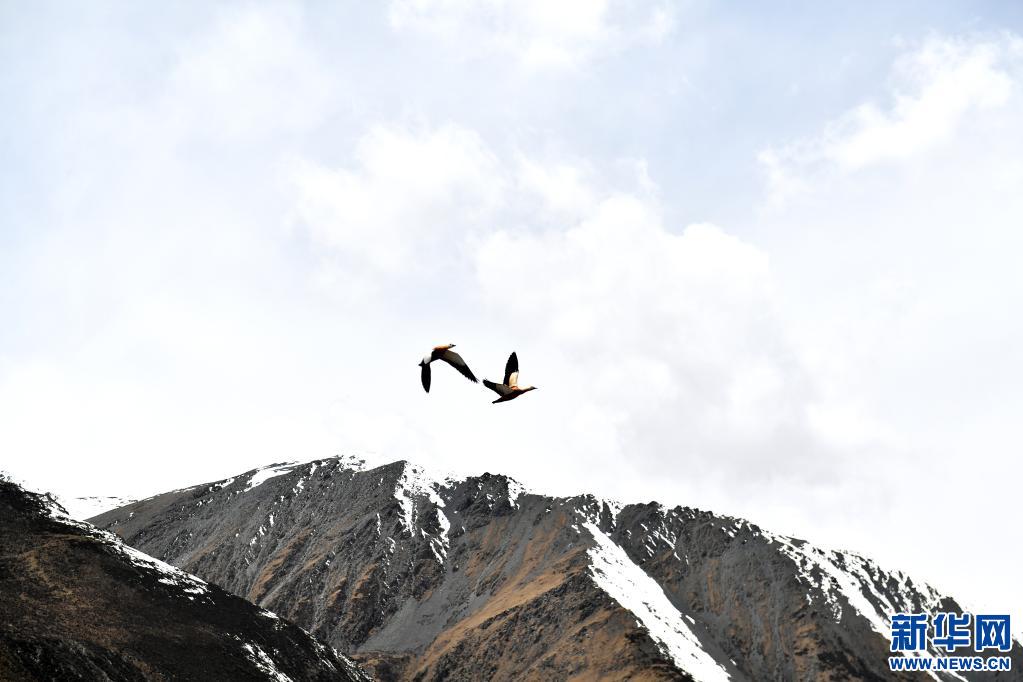 這是5月4日在那曲市比如縣境內拍攝的薩普雪山附近的飛鳥。新華社記者 孫瑞博 攝
