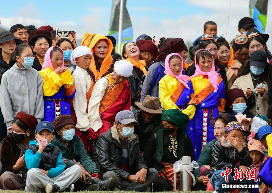 9月23日,“中國農(nóng)民豐收節(jié)”西藏慶祝活動在拉薩市墨竹工卡縣舉行,當(dāng)?shù)孛癖娸d歌載舞,慶?!柏S收節(jié)”。圖為慶?;顒游笈^眾。 中新社記者 貢嘎來松 攝