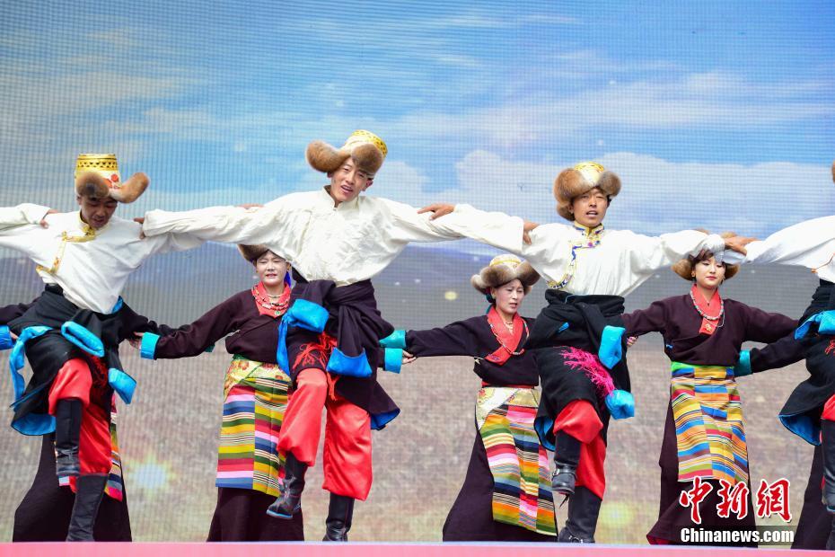 9月23日,“中國農(nóng)民豐收節(jié)”西藏慶?;顒釉诶_市墨竹工卡縣舉行,當(dāng)?shù)孛癖娸d歌載舞,慶?!柏S收節(jié)”。 中新社記者 貢嘎來松 攝