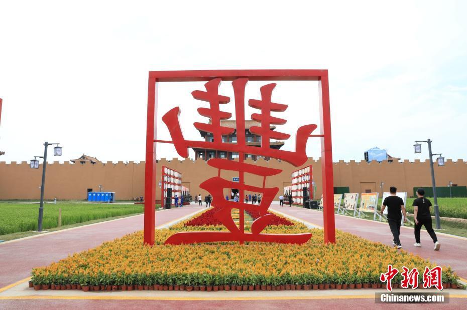 9月23日,航拍寧夏賀蘭縣創(chuàng)意稻田。當(dāng)日是第四個中國農(nóng)民豐收節(jié),寧夏多地舉行慶祝農(nóng)民豐收節(jié)活動。(無人機照片) 中新社記者 謝宇 攝