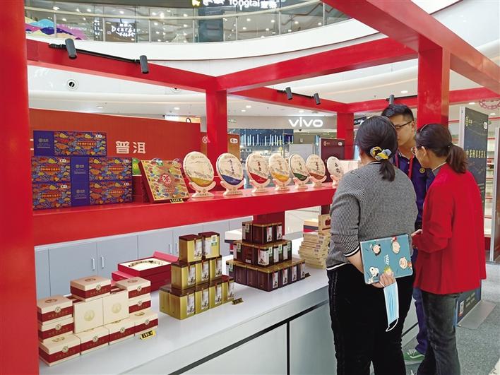 茶博會(huì)現(xiàn)場(chǎng)消費(fèi)者購(gòu)買茶葉。