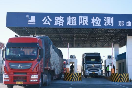 貨車正在通過(guò)那拉高速公路那曲超限檢測(cè)站。(西藏自治區(qū)交通運(yùn)輸廳供圖)