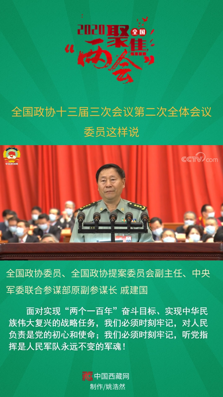 全國政協(xié)委員、全國政協(xié)提案委員會副主任、中央軍委聯(lián)合參謀部原副參謀長戚建國發(fā)言說,面對實現(xiàn)“兩個一百年”奮斗目標、實現(xiàn)中華民族偉大復(fù)興的戰(zhàn)略任務(wù),我們必須時刻牢記,對人民負責是黨的初心和使命;我們必須時刻牢記,聽黨指揮是人民軍隊永遠不變的軍魂!