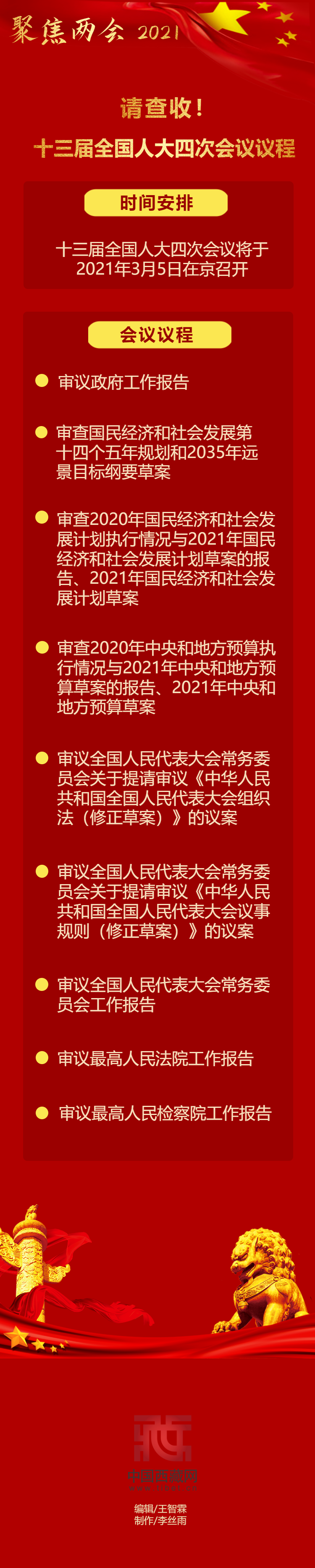 【聚焦兩會(huì) 2021】請(qǐng)查收!十三屆全國人大四次會(huì)議議程