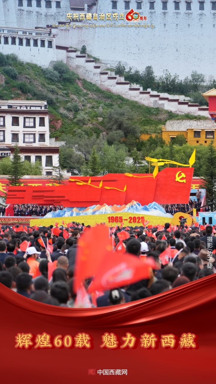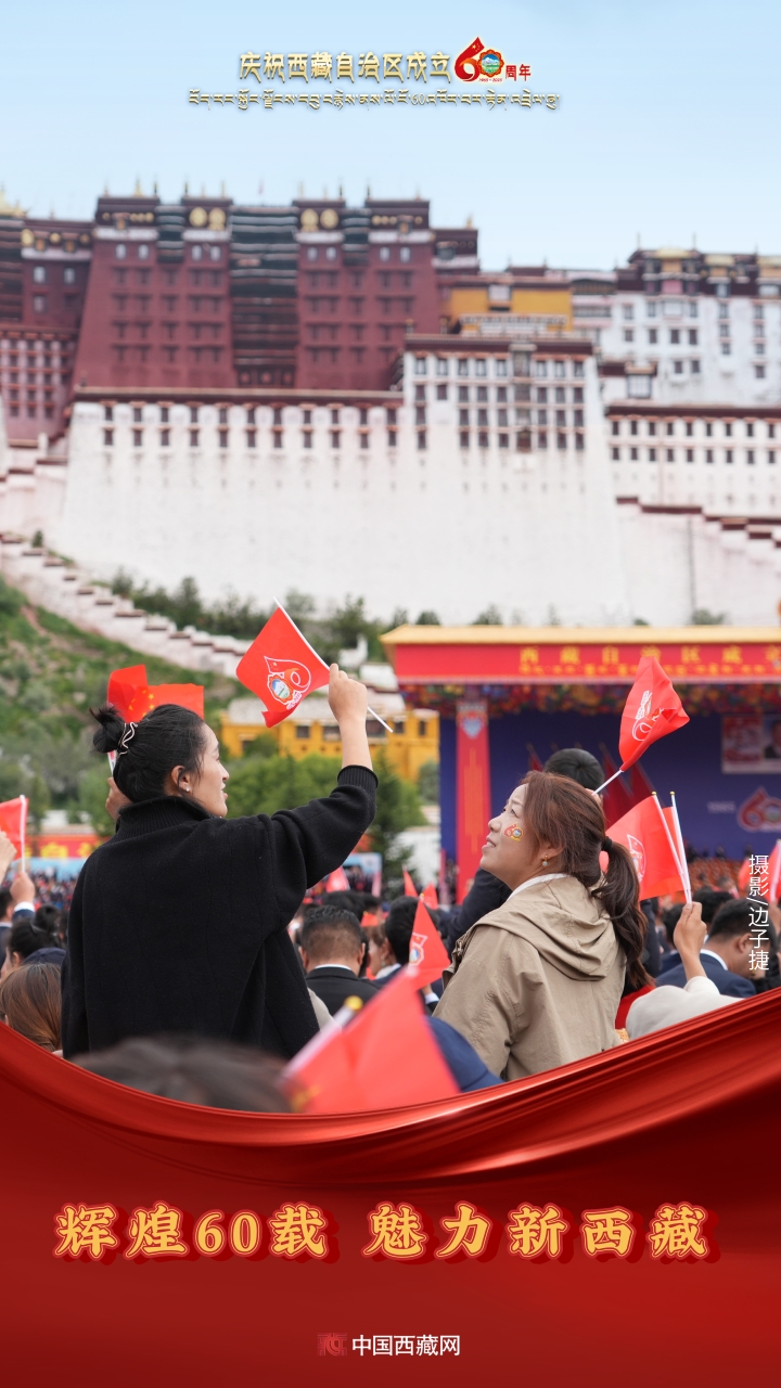 六十年風(fēng)雨兼程,六十年春華秋實,都在這一刻化作人們真摯的笑容與熱烈的歡呼。讓我們祝福祖國!祝西藏自治區(qū)繁榮昌盛,祝西藏各族人民幸福安康?。ㄖ袊鞑鼐W(wǎng)攝影/邊子捷 旦曲 趙振宇 制作/王茜)